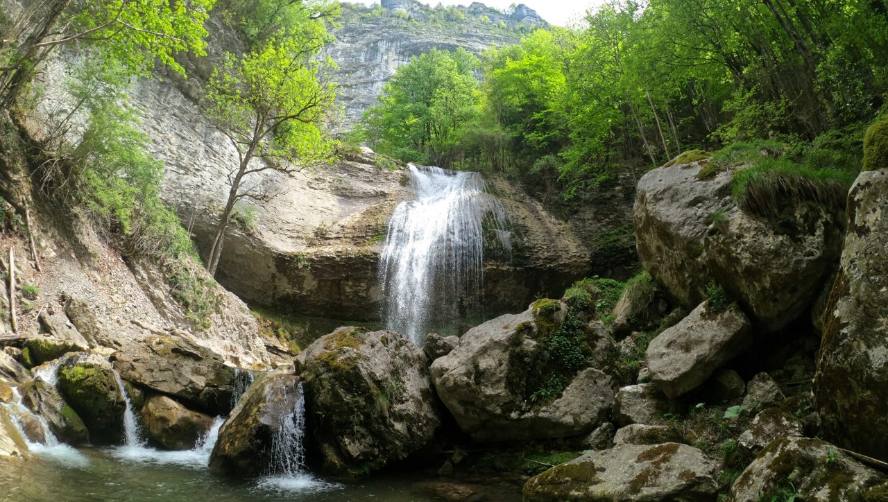 Un canyon d’ampleur au final aérien avec une cascade de 70 mètres visible depuis Claix en contre-bas. Une vue imprenable sur Belledonne et le Taillefer, les massifs situés de l’autre côté de la vallée Grenobloise. Une succession de rappels pour vous préparez à terminer ce parcours en apothéose !